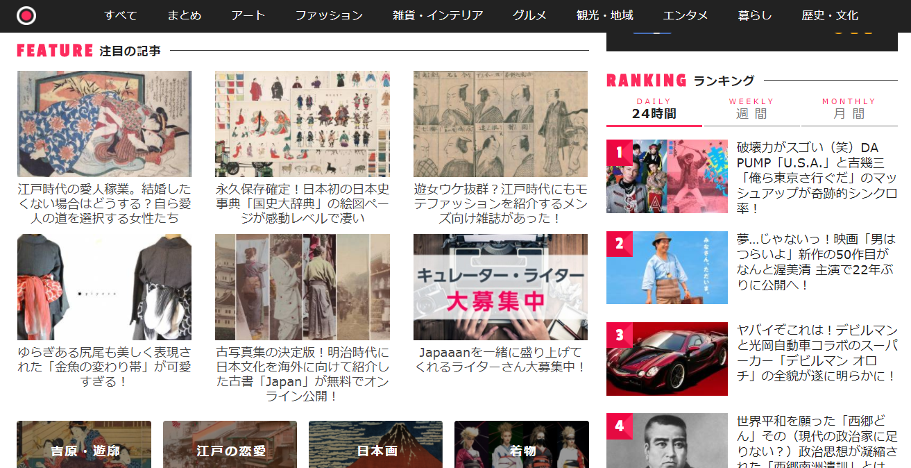 Si vous voulez découvrir des objets traditionnels insolites ou si vous voulez en savoir plus sur l'histoire du Japon à travers d'anciennes peintures ou photos, Japaan va vous combler. J'adore particulièrement leurs articles sur l'époque Edo avec la présentation d'oeuvres ukiyoe. Les articles peuvent être un peu difficiles car les termes peuvent être anciens mais il suffit d'un peu de recherche et la compréhension devient facile. Les articles ne présentent pas seulement des objets d'art mais plutôt le contexte et l'histoire qui autour ces derniers pour un retour dans le passé. Ils mettent des fois en avant des produits locaux en édition limitée, qui peuvent devenir de bonnes idées de souvenirs à offrir !